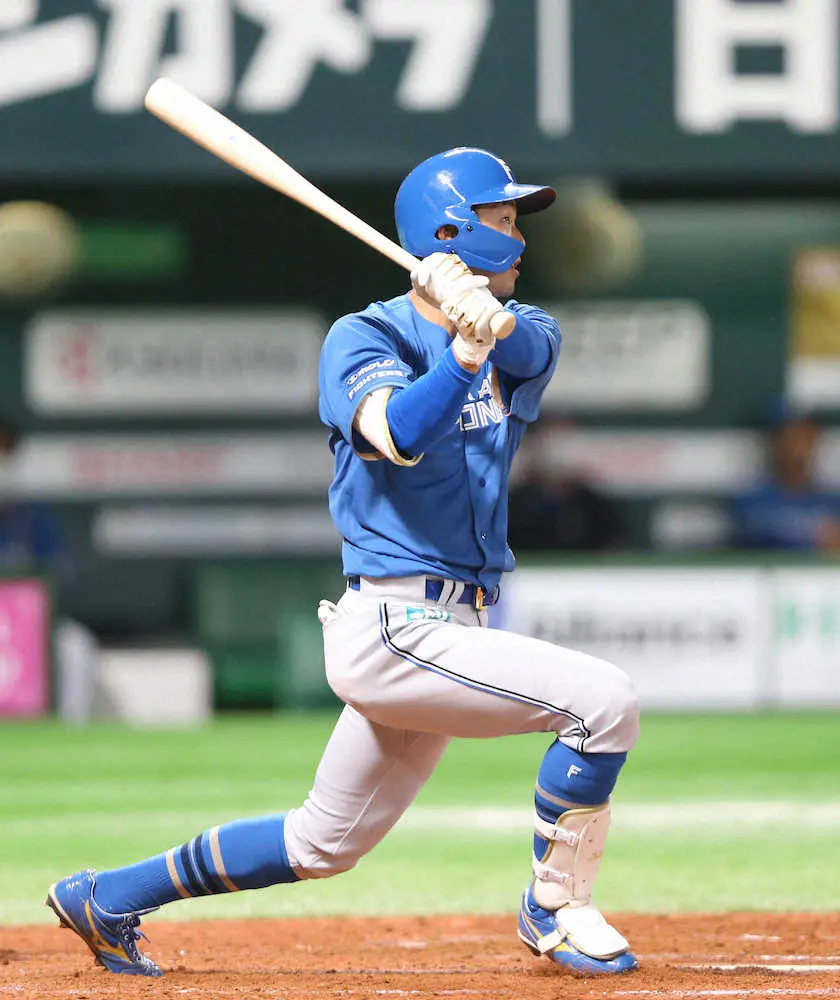 打球が右中間スタンドに飛び込むと、新庄監督はベンチ前で両手を上げて満面の笑みを浮かべた。新庄監督の初陣初勝利へチームに流れを呼び込む一発となった。