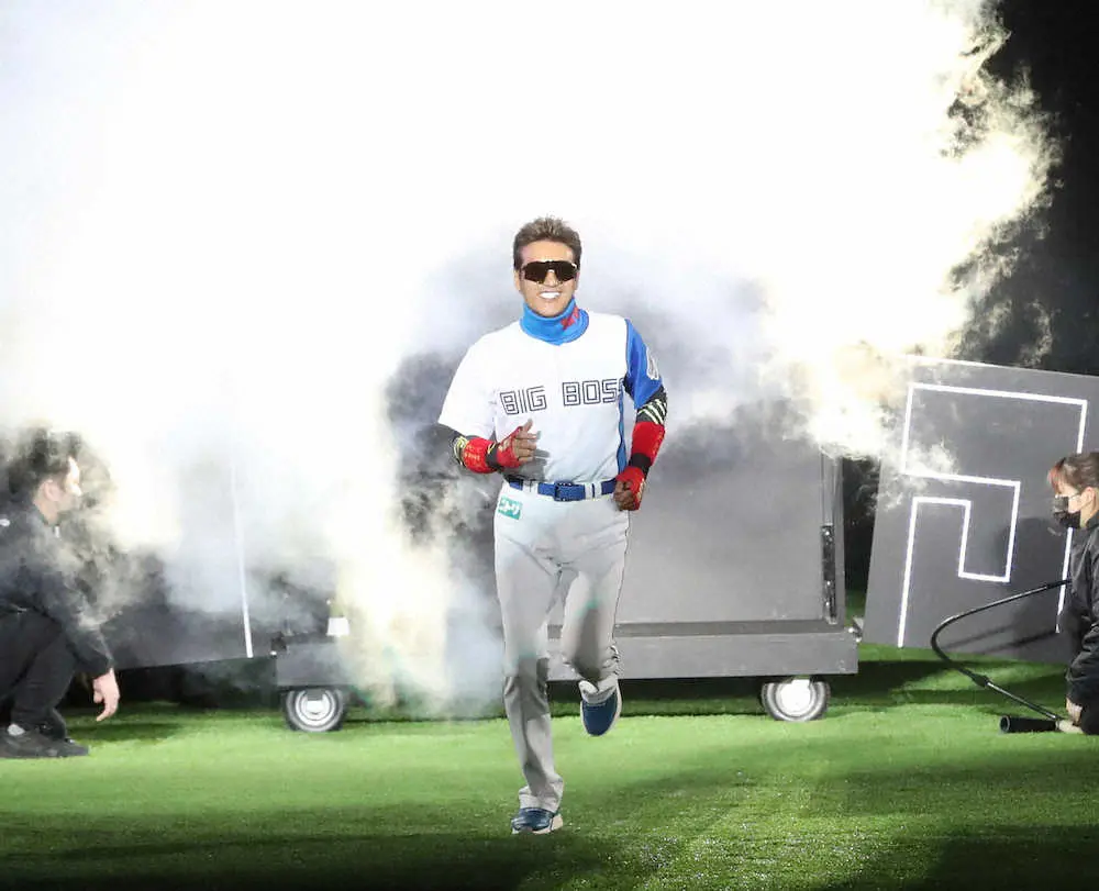 「最大の見せ場でしょう」とサプライズを予告した監督紹介。暗転したグラウンドにアニメ「ルパン三世」のテーマ曲が流れる中、偽BIGBOSSが三塁ベンチなど3カ所に現れた後、中堅付近の箱が割れると胸に「BIGBOSS」の光る文字が入った特別ユニホーム姿でド派手に登場した。