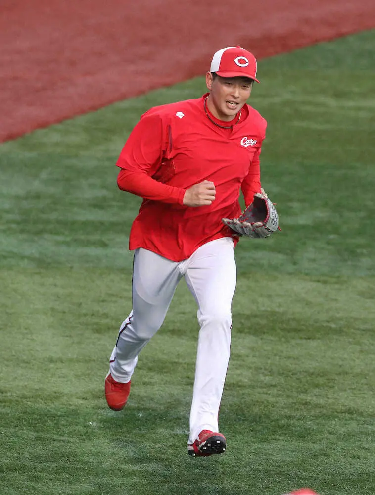横浜スタジアムで行われた17時からのナイター練習。大瀬良はリラックスした表情でキャッチボールなどに汗を流し、開幕試合の先発に備えた。03年から07年まで5年連続で務めた黒田以来となる4年連続4度目の大役。気負いはない。