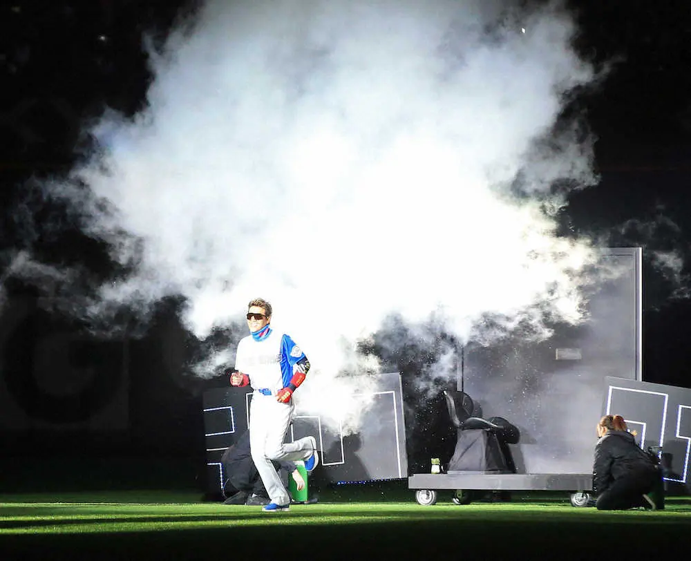 また、胸には通常「HOKKADO NIPPONHAM」とロゴがされているところ、「BIG BOSS」となっていた。さらに、その「BIG BOSS」のロゴが光った。新庄監督の登場にスタンドは大盛り上がり。センターから軽やかな足取りで選手たちが並ぶ場所へ向かいながら、スタンドの声援に応えた。