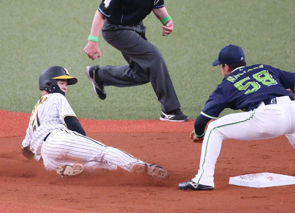 中野は、1死走者なしから左前打を放ち出塁した。続くマルテが左飛に倒れ、2死一塁となり4番・佐藤輝の5球目に盗塁を試みたがヤクルト・古賀に刺された。昨季、32回盗塁を企画して成功率9・38を誇り2度しか失敗がなかったが、開幕戦で早くも記録した。