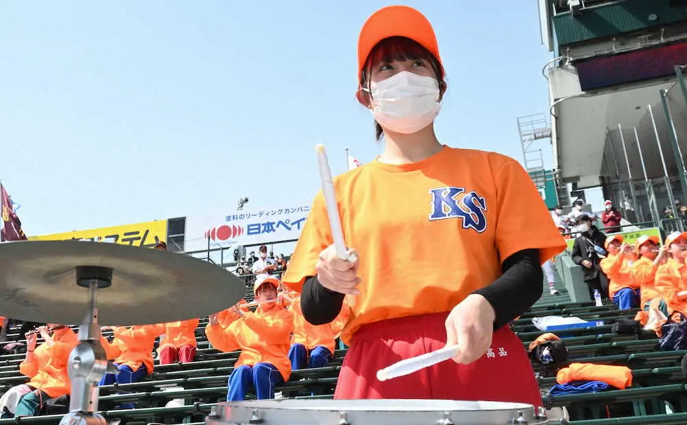 だが、夢は続いた。6年ぶりにセンバツ出場を果たした野球部。コロナ下で入学してきた新2、3年生は球場演奏の経験がない。一度でも経験している高品さんの力が必要だった。3月9日から練習に合流し「野球部が叩く太鼓のリズムも考えて」や「指揮者がいないからスネアドラムの音に合わせて」とアドバイス。スタンド席を想定して学校の階段に座って練習もした。