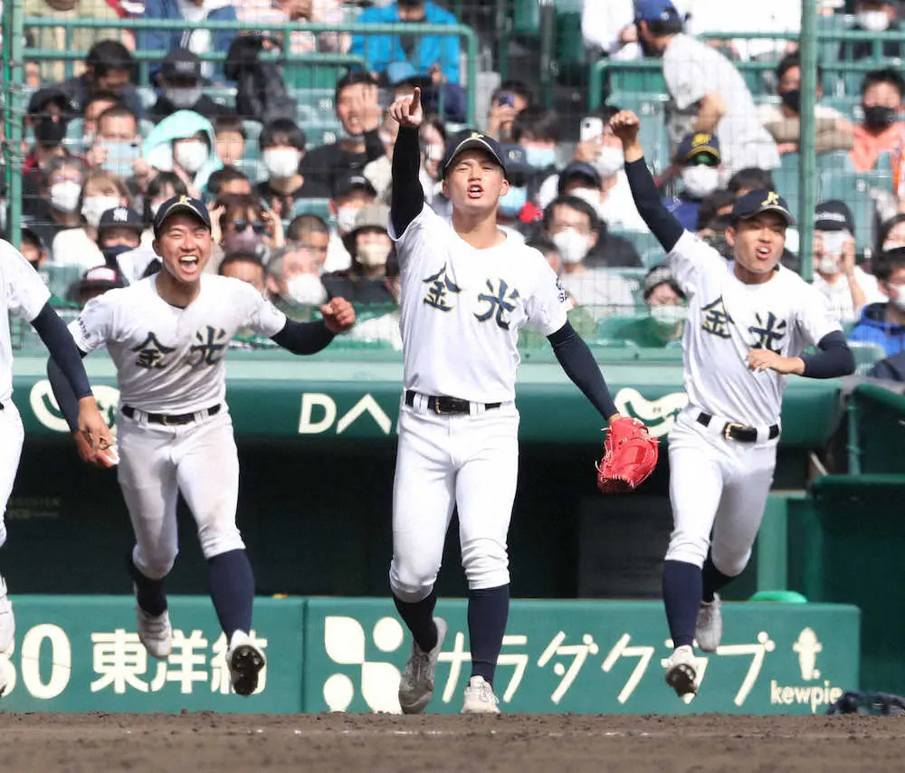 《61年ぶりサヨナラ押し出し死球》金光大阪がタイブレークの延長13回に押し出し死球でサヨナラ勝ちした。サヨナラ押し出し死球は選抜では第33回(61年)に北海(北海道)が御坊商工(和歌山、現・紀央館)との1回戦(延長10回)で記録して以来61年ぶり。木更津総合は山梨学院との1回戦では春37年ぶりのサヨナラ押し出し四球で勝利。同一大会でサヨナラ勝ちとサヨナラ負けをともに記録したのは第90回(18年)の創成館(長崎)以来春14度目。