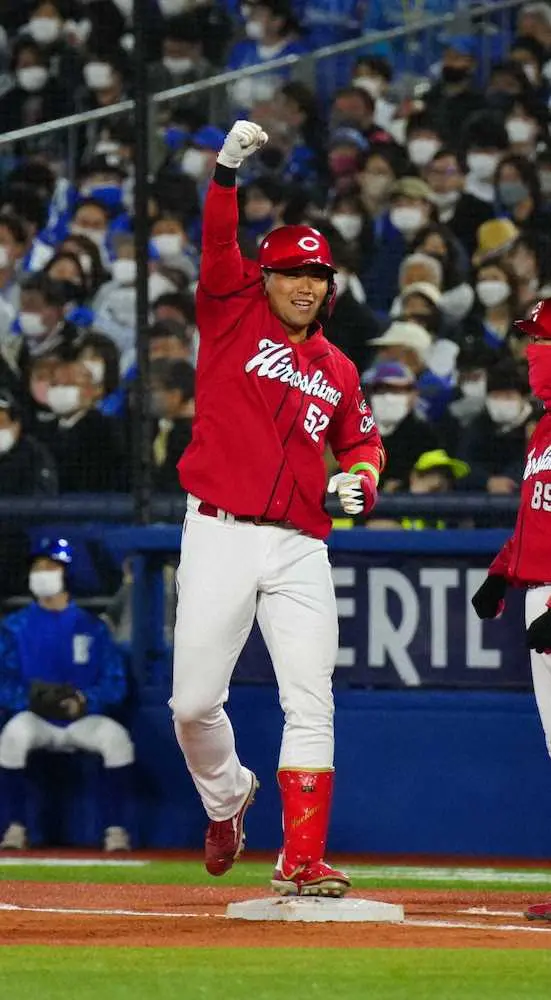 鈴木誠也の抜けた穴から新しい風が吹いた。前4番の定位置だった右翼に入ったのは新人・末包。球団新人では、06年梵英心以来3人目の開幕スタメンだった。「先発を任された以上は新人も関係ない」。この気合が記録尽くしのデビュー戦の始まりとなった。