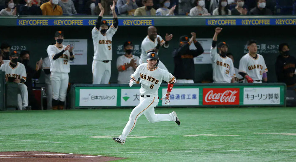 岡本和、中田ともに初球を打った一発で、岡本和は内角への142キロ直球、中田は真ん中付近に入ったカットボール。先制二塁打の坂本は二塁ベースへ滑り込むと珍しく感情露わに何度もガッツポーズを作って感情を爆発させていたが、岡本和の2ランで本塁生還を果たすと、満開の笑顔で主砲を出迎えていた。