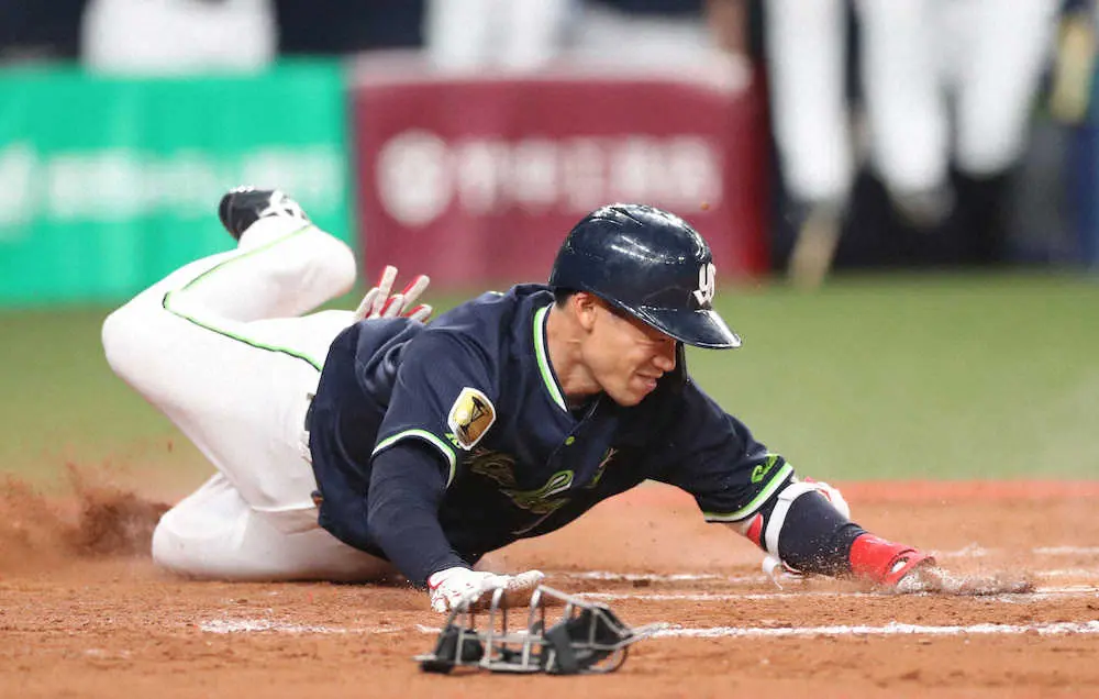 3―0の7回2死。小野の外角スライダーを逆らわずに逆方向へ。右中間に飛んだ打球を追う中堅・近本と右翼・佐藤輝がともに滑り込むも追いつけず。「良いところに落ちてくれました。一生懸命走りました」とボールが転々とする間に、スピードを緩めることなく一気に本塁生還。今季1号がランニングを本塁打となった。