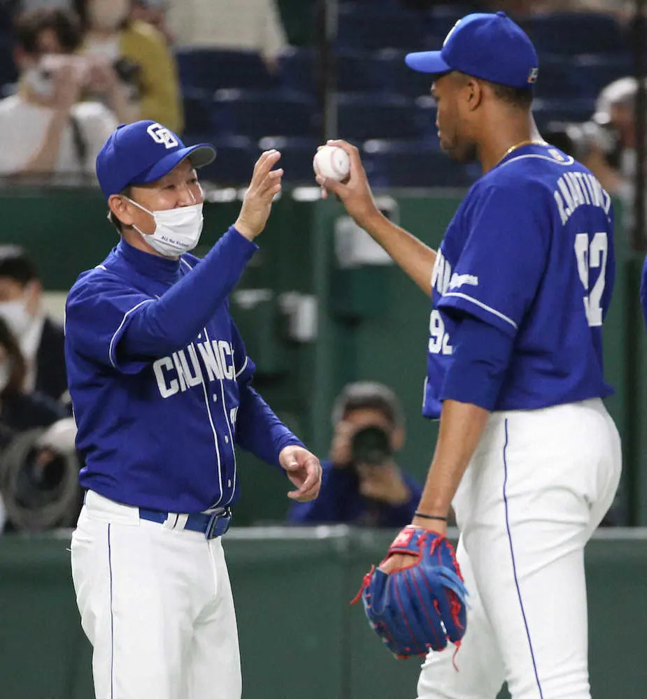 さらに、恩師である星野監督と同じ3戦目での初勝利を振られると「開幕から勝てたと思う試合が色々ありましたけど、正直きょう一つ勝てて、ホッとしてはいけないのですが、一つ勝たないと始まらないので、きょうは本当にうれしい日になりました」と笑顔を見せ、今後の抱負については「先制して、最後まで行くのがうちの野球ですが、このように負けていても最後まで、あと残り140試合ありますけど、あきらめずに全力で戦っていきます」と話し、左翼席の竜党からも大きな歓声を浴びていた。