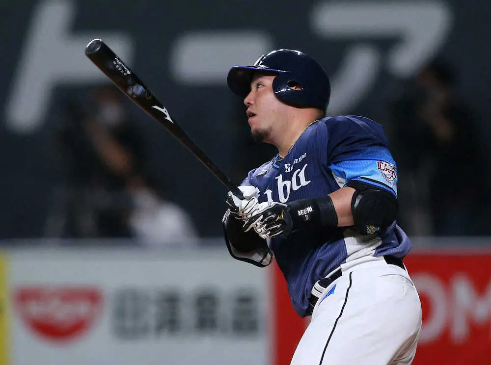 西武・山川穂高内野手(30)が2回先頭で特大の3号ソロを放った。上沢の7球目、143キロ直球を広い札幌ドームのバックスクリーンに運んだ。ベンチ前に戻ると代名詞の「どすこいポーズ」を披露し、「次の打席でも打てるように頑張ります!」と語った。