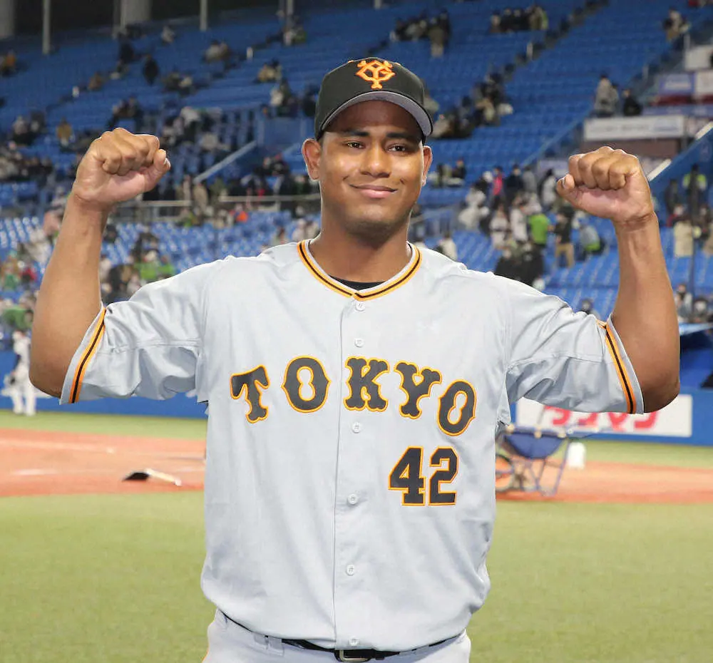 巨人・メルセデス「アリガトウゴザイマ~ス!」 ヤクルト打線を6回途中2安打零封 今季1勝にスマイル!