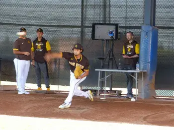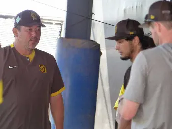 パドレス・ダルビッシュ 野茂英雄氏、松坂大輔氏が見守る前でブルペン入り27球