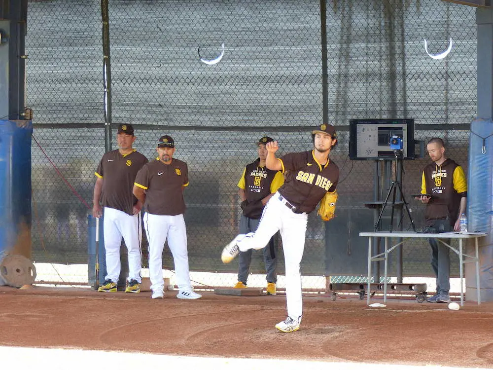 パドレスのダルビッシュ有投手(35)が30日(日本時間31日)、米アリゾナ州ピオリアのキャンプ地でブルペン入りし、捕手を座らせ、変化球を含め27球を投じた。