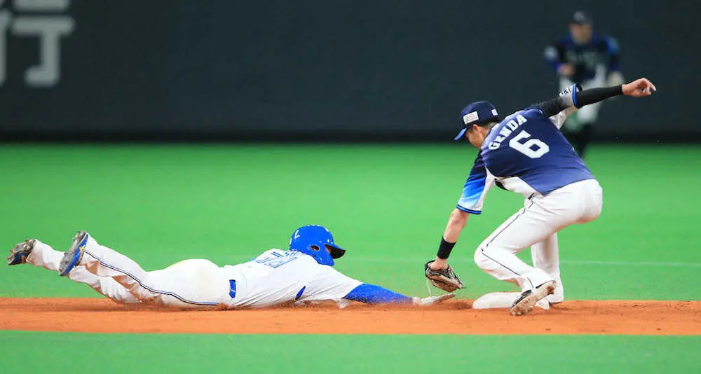 1―0の4回に先頭の石井が中前打で出塁し、その後2死となって二塁まで進んだ。宇佐見の打席でカウント1―1からの3球目は外角直球はボール。この時に第2リードを大きく取っていた石井は、捕手・森からの二塁送球で戻りきれずにタッチアウト。日本ハムベンチはリクエストを求めたが、リプレー検証の結果は変わらなかった。