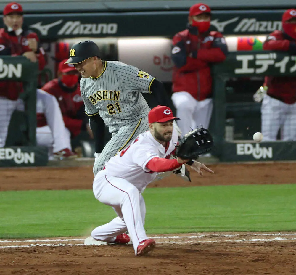 阪神先発の秋山が必死の激走で先制点を生み出した。2回1死満塁で打席が回り、玉村に2球で追い込まれながらも3球目スライダーに食らいつく。遊撃への緩いゴロを小園が処理し、二塁の菊池涼へ。名手・菊池涼が体勢を崩しながらも一塁へスーパー送球し、一度は6―4―3の併殺打とジャッジされた。