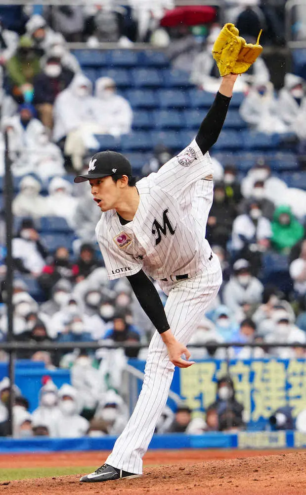 <ロ・西3>8回、95球目にも160キロを記録した佐々木朗(撮影・長久保 豊) Photo by スポニチ ロッテ朗希が圧巻の投球 8回1失点、最速163キロで自己最多の毎回13奪三振 ギャラリーで見る この記事のフォト 2022年04月03日の画像一覧 もっと見る 2022年04月03日の画像をもっと見る