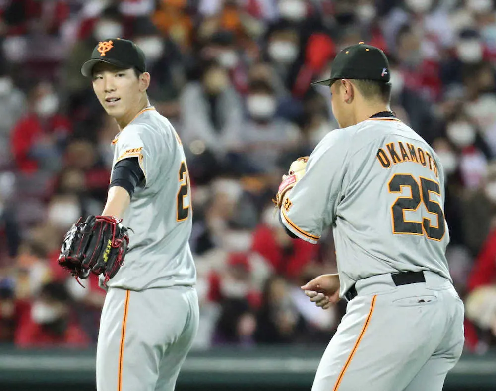 <広・巨1>6回、マウンドに集まり話する戸郷(右から3人目)ら巨人ナイン (撮影・白鳥 佳樹) Photo by スポニチ 巨人・戸郷は6回3失点で降板 前日22歳バースデー 4回に自ら同点打も6回… ギャラリーで見る この記事のフォト 2022年04月05日の画像一覧 もっと見る 2022年04月05日の画像をもっと見る