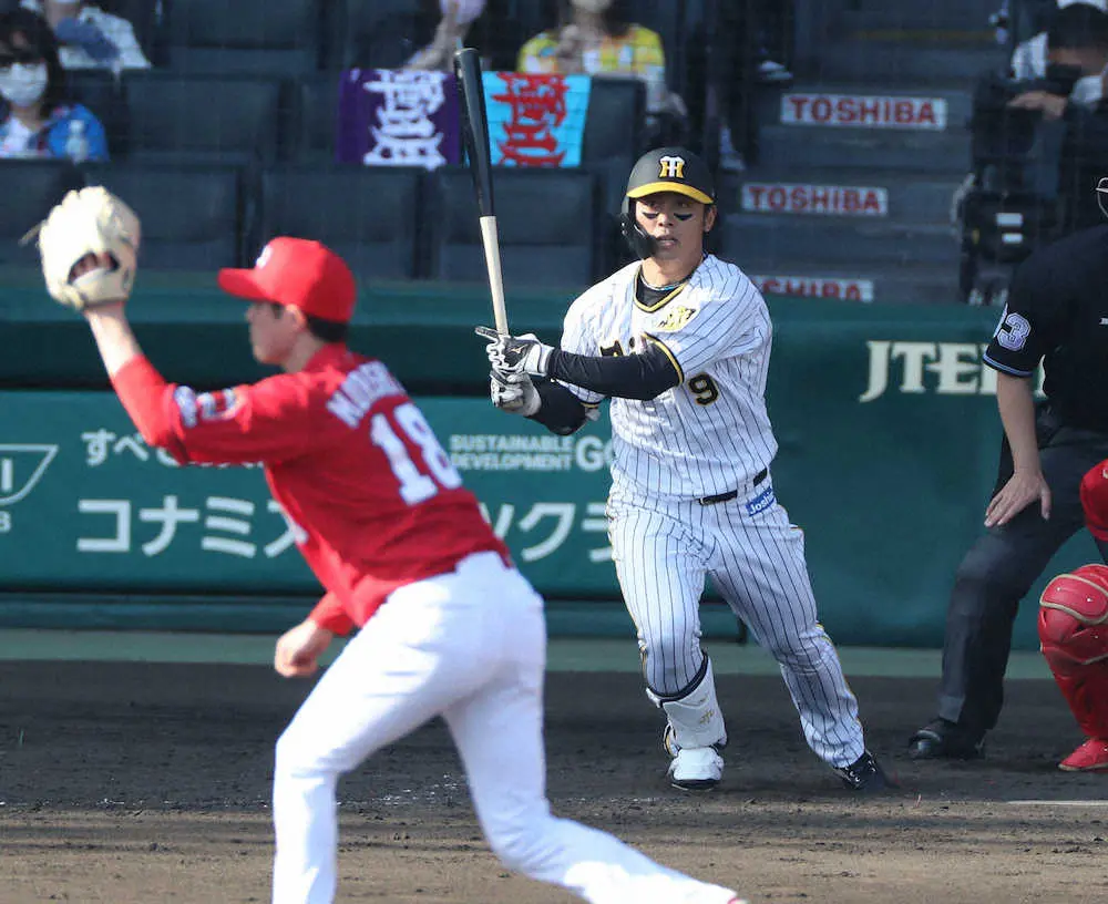 阪神・高山俊外野手(28)が9日の広島戦で1―6の5回1死から代打で起用され、明大の後輩、森下のカーブを中前にはじき返した。