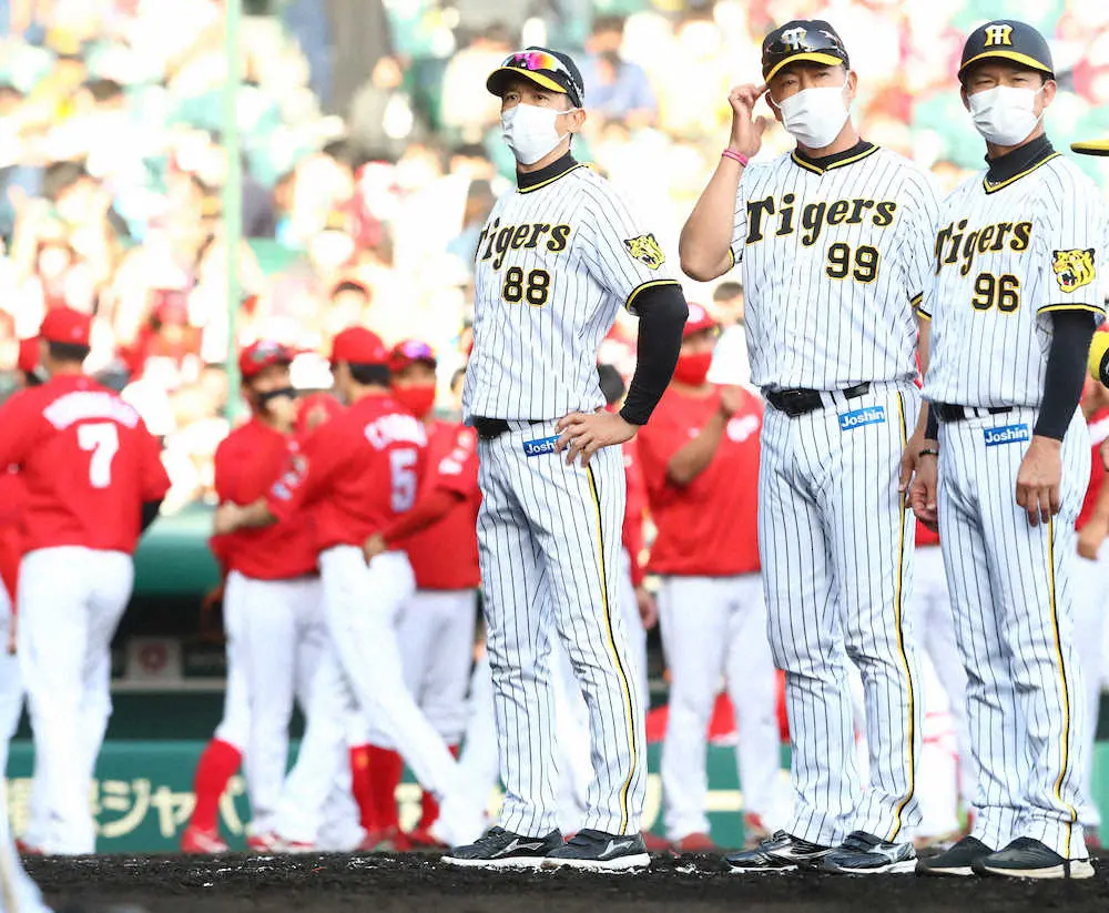 初回に先頭の近本が11試合連続安打となる中前打で出塁したが、中野との間で機動力も使わず、送りバントの構えも見せないまま強攻して遊ゴロ併殺で逸機。7回、佐藤輝の右中間二塁打を足場に2死三塁としたが、6番糸原で勝負し、二飛。8回1死一塁での代打ロハス・ジュニアも左飛に倒れ、遠藤を攻略することができなかった。9回1死三塁でも栗林に対して、佐藤輝が空振り三振、大山も空振り三振で追いつくことはできなかった。