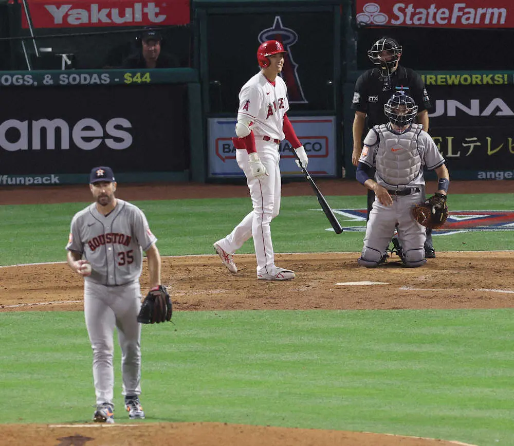 エンゼルス・大谷は約3年ぶりの対戦だった現役最多226勝右腕バーランダーに3打席連続三振を食らった。初回は直球を空振り三振。3回は内角スライダーに見逃し三振。5回は内角直球に見逃し三振だった。同一投手に1試合3三振は8度目。バーランダーには初対決の18年5月16日以来2度目となった。