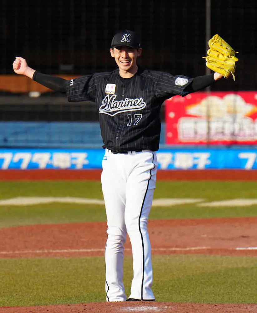 佐々木朗が左足を高く上げ、右腕を振り抜く。9回2死。代打で登場した昨年本塁打王・杉本を、3球連続フォークで空振り三振。2万2431人のスタンディングオベーションに、20歳右腕は両手を広げて応えた。