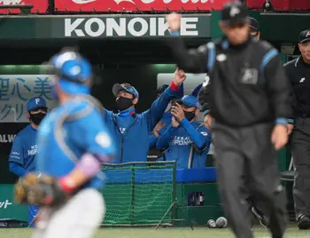 場面は2-0で迎えた7回1死一、三塁の場面だった。先発・加藤が打者・山田を三ゴロに打ち取り、三塁手・野村が本塁送球。球審のセーフの判定に新庄監督は大きな身振りでリクエストのサインを送った。
