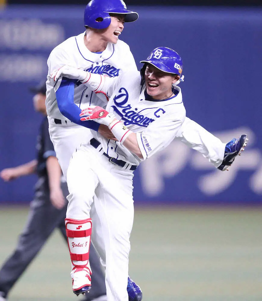 1死から京田が加治屋からセンターへの二塁打、続く清水の代打・根尾は四球を選ぶ。1死一、二塁の好機で、大島が右中間を破るサヨナラタイムリーを放った。大島は「すっきりしました。(根尾)アキラがつないでくれたので自分が還すつもりで積極的にいきました」とチーム一丸を強調した。