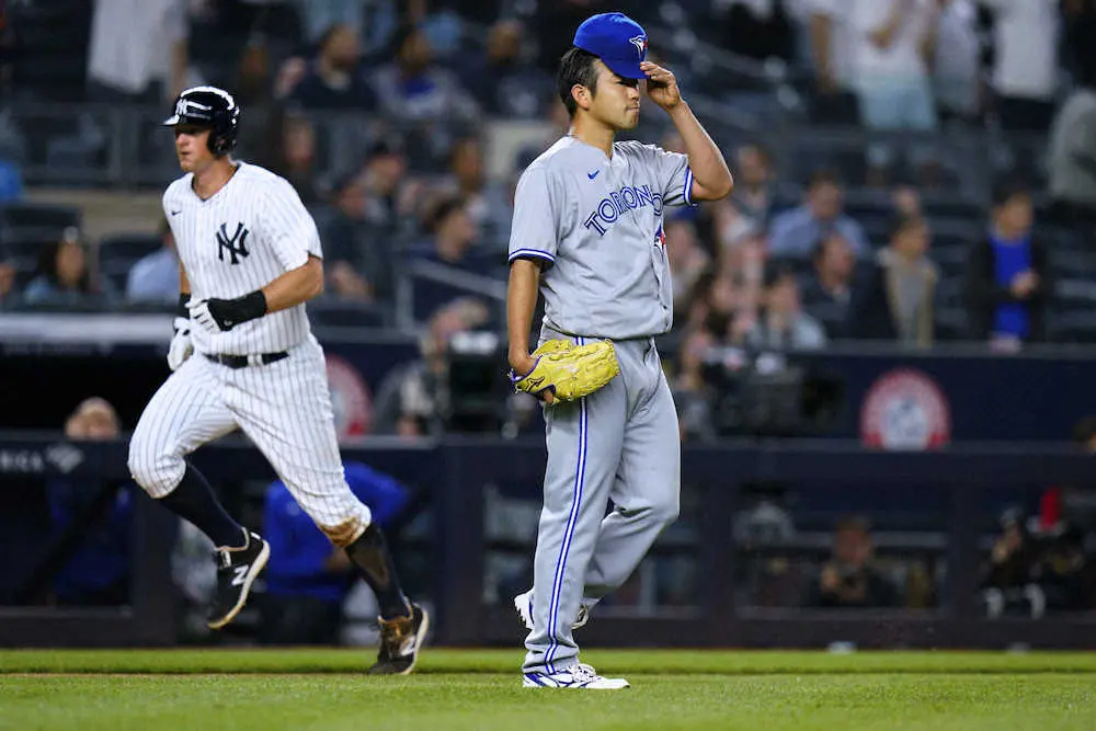 ブルージェイズ・菊池が新天地でのデビュー戦で3回1/3を5安打3失点(自責2)の乱調で黒星を喫した。