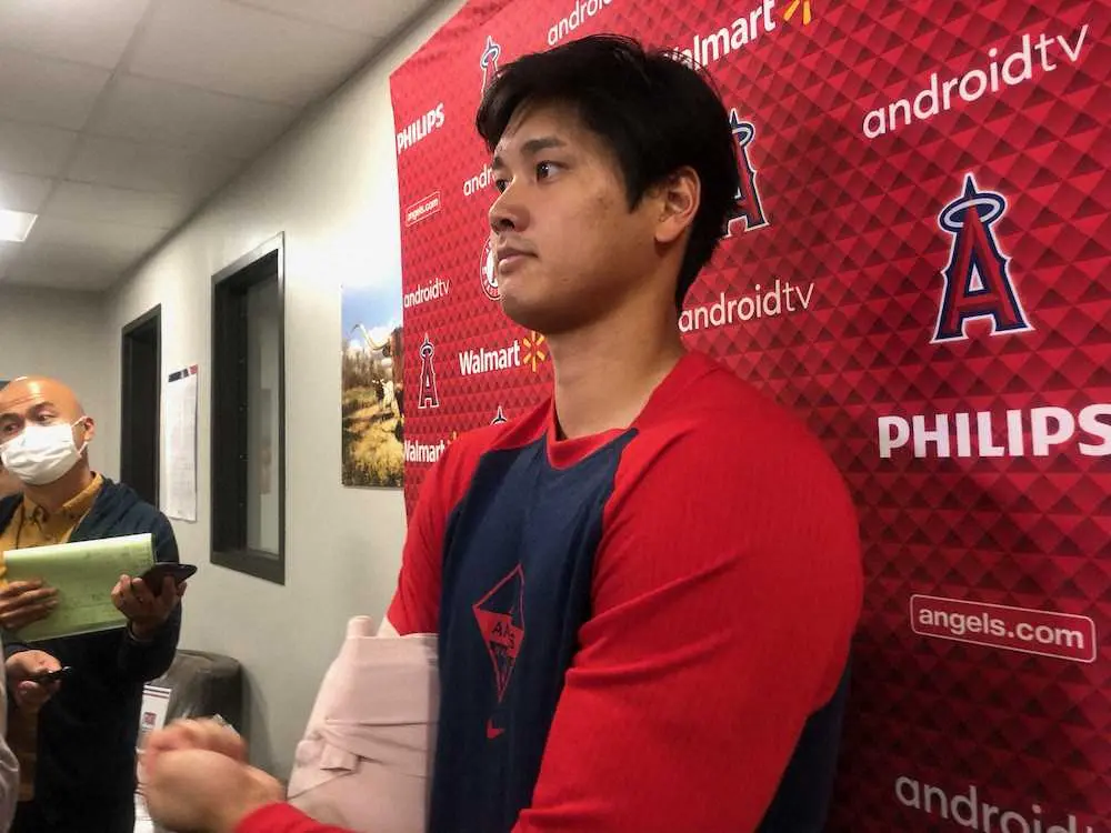 囲み取材に応じる大谷(撮影・柳原 直之) Photo by スポニチ 【大谷翔平 一問一答】満塁弾被弾はスプリット落ちず「ただの半速球」打… ギャラリーで見る この記事のフォト 2022年04月15日の画像一覧 もっと見る 2022年04月15日の画像をもっと見る