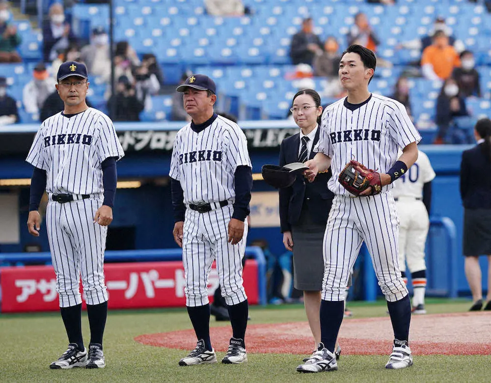 <立大・法大>試合前の整列をする法大の(左から)加藤監督、大島助監督、宮本ことみマネジャー(撮影・木村 揚輔) Photo by スポニチ 六大学史上初 立大VS法大で女性主務同士がベンチ入り「電話して相談する… ギャラリーで見る この記事のフォト 2022年04月16日の画像一覧 もっと見る 2022年04月16日の画像をもっと見る