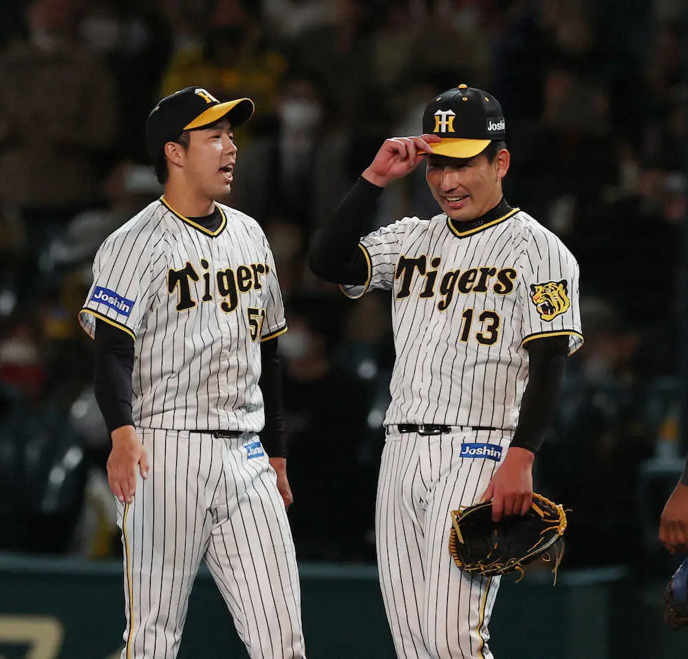 【記者フリートーク】阪神・岩崎が2年連続で後輩・青柳の打席登場曲を独断で選んだ。雨男にちなんだ昨年の「レイニーブルー」から今年は狩野英孝の音楽プロジェクト「50TA」のアルバム収録曲「紅葉に抱かれて」に変更。歌詞に度々出てくる「紅葉」と「晃洋」(青柳の名前)がかかっており、「50TA」も「背番号50タイガースの青柳」と非の打ちどころがない。