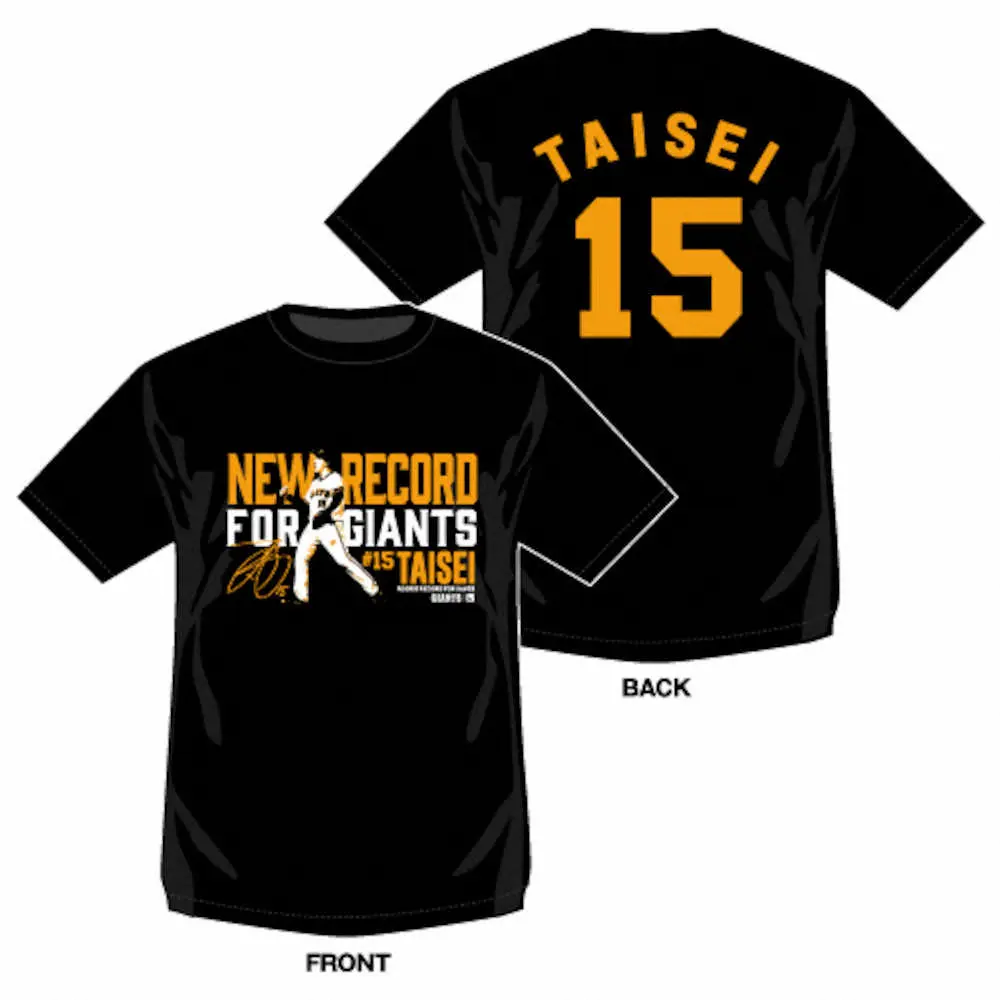 記念グッズはTシャツやフェイスタオルなど、計25商品。達成当日の写真と、同日に掲げた記念ボードのデザインを使用し、ジャイアンツカラーのオレンジとブラックを基調としたデザインとなっている。
