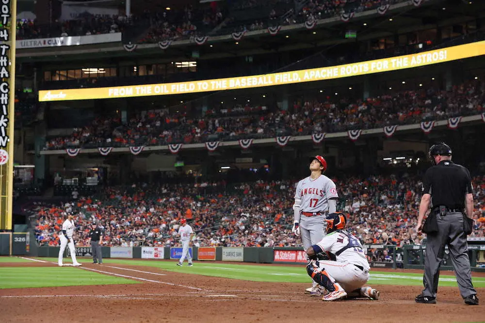 エンゼルスの大谷翔平投手(27)は19日(日本時間20日)、敵地ミニッツメイド・パークでのアストロズ戦に「1番・DH」で先発出場。4打数無安打1四球で、先発メンバーで1人だけ無安打の“蚊帳(かや)の外”で、連続試合安打は「8」でストップした。エ軍は13安打7得点の猛攻で7―2で勝利し、再び貯金2とした。