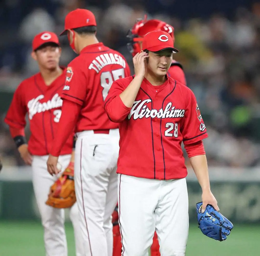 <巨・広>8回途中で降板する広島・床田(撮影・村上 大輔)