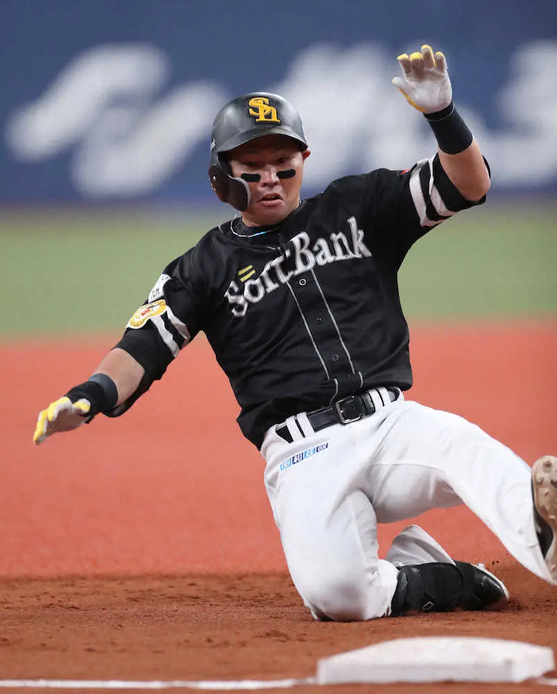 ソフトバンク・中村晃が終盤に意地を見せた。1―3の8回1死一塁でビドルの152キロ直球を右翼フェンス直撃の適時三塁打。「思い切って振りにいくことだけを考えて打席に入った。真っすぐを捉えることができた」と振り返った。5試合連続打点をマークし、中軸として打線をけん引している。