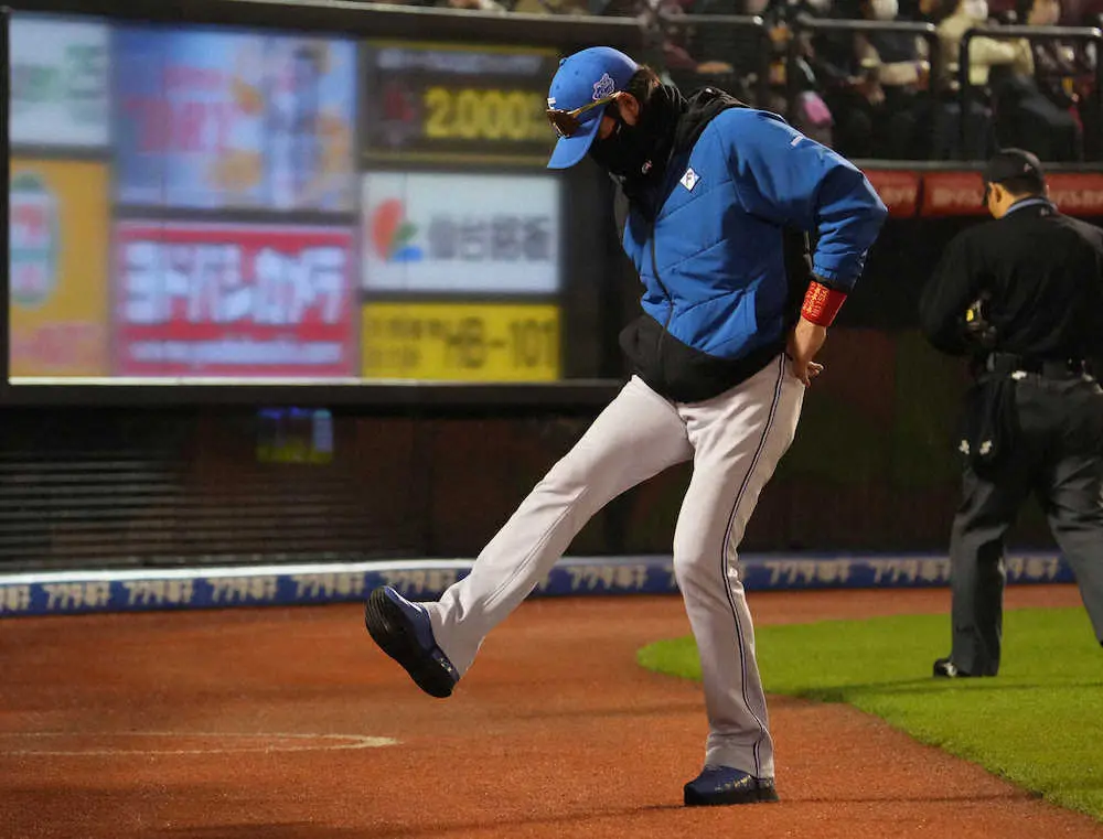 <楽・日>7回、投手交代を告げる新庄監督(撮影・沢田 明徳)