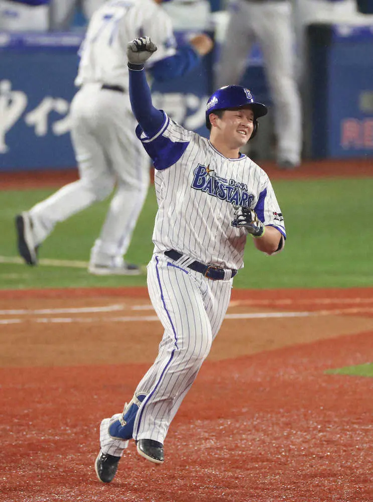 DeNA・牧が24歳のバースデー弾に喜色満面だ。3回無死二、三塁から右中間へ3号3ラン。7日の新型コロナウイルス陽性判定から2週間戦列を離れたが、復帰2戦目で全快アーチを放った。