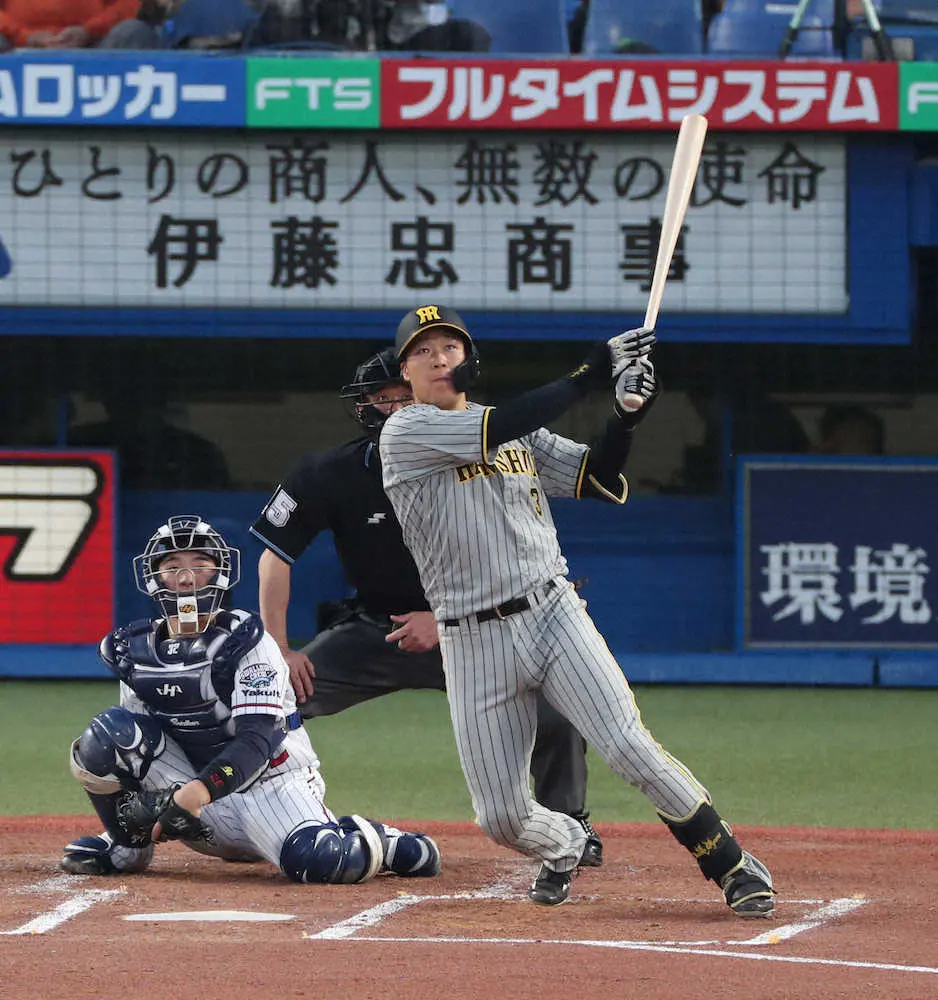 阪神・大山が4番の務めを果たした。初回2死二塁で高梨の甘く入ったフォークを捉え、左中間席に先制の3号2ランを突き刺した。