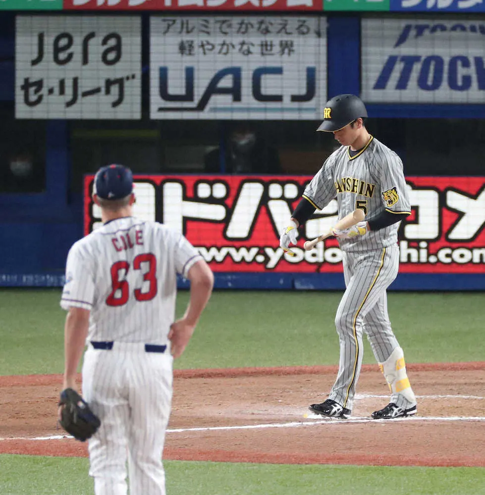 四球には出塁にかけた強い意志がみてとれた。来日初登板の新外国人A・J・コールは代わり端で制球が乱れていた。カウント3ボール―1ストライクの後、近本はセーフティーバントのしぐさを見せた。恐らく、ベンチからの「待て」ではなく、自ら待球、投手を陽動したのだろう。四球を奪いにいったと言える。