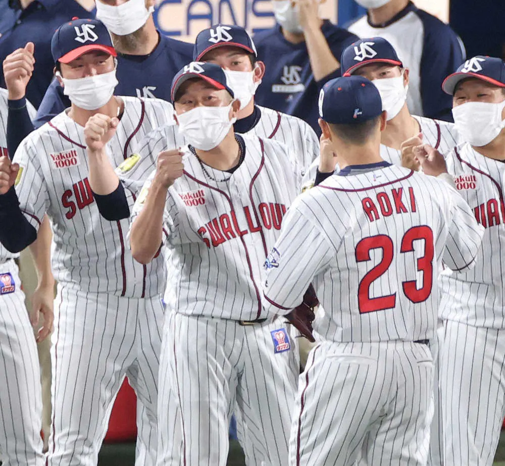 青木宣親外野手(40)の今季1号ソロで4回に入った虎の子の1点を石川、梅野、田口、マクガフの4投手で守り抜いて完封リレー。青木に続いてお立ち台に上がった石川も感激の面持ちだった。