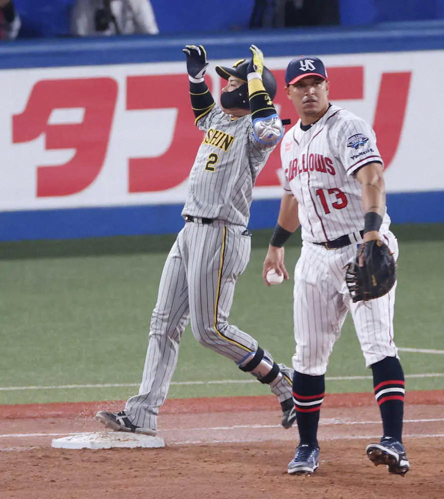 阪神・中野が今季1号2ラン「テルが打ってくれて良い流れの中、打席に入れました」佐藤輝とアベック弾