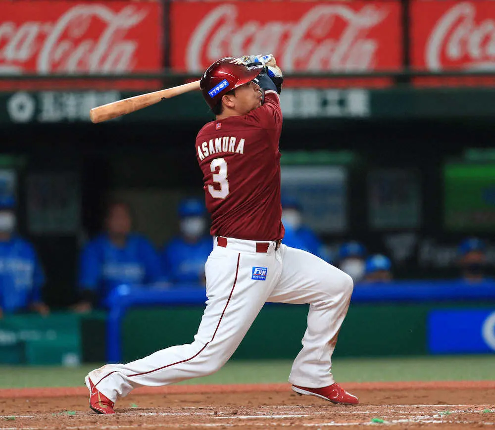 3号ソロを含む3安打3打点と打線をけん引した浅村は「チーム状態が良い時にしっかり勝てるようにやるだけ」。前夜の零敗の借りをきっちり返し、首位の意地を見せつけた。(重光 晋太郎)
