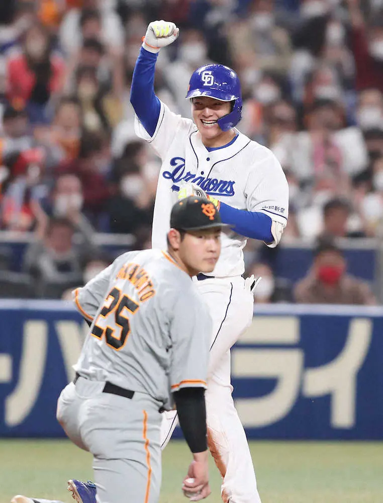 中日が5点ビハインドをはねかえした。先発の福谷が3回で8安打を浴びて6失点KO。3回表を終えて1―6と5点差を追う展開になったが、その裏に打線が奮起した。