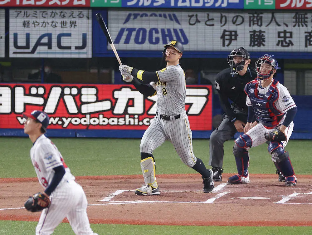 阪神・中野が今季1号2ラン「テルが打ってくれて良い流れの中、打席に入れました」佐藤輝とアベック弾