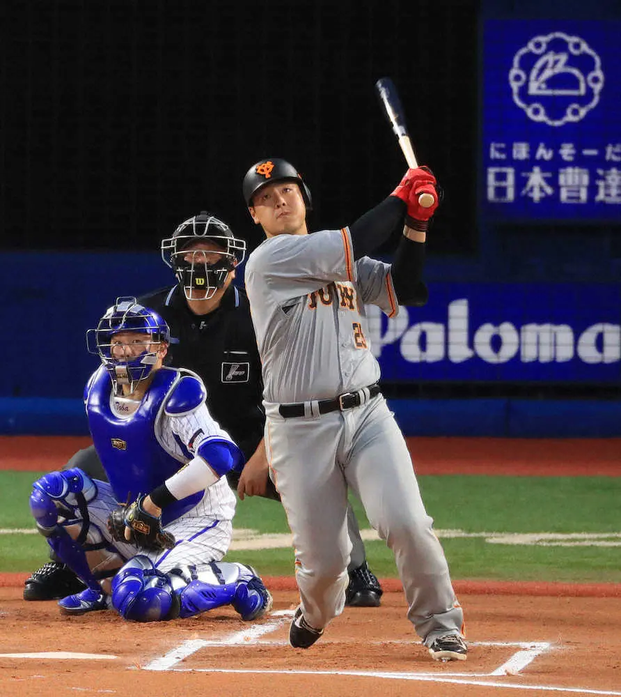 巨人・岡本和 バックスクリーン直撃の7号先制弾で単独キング