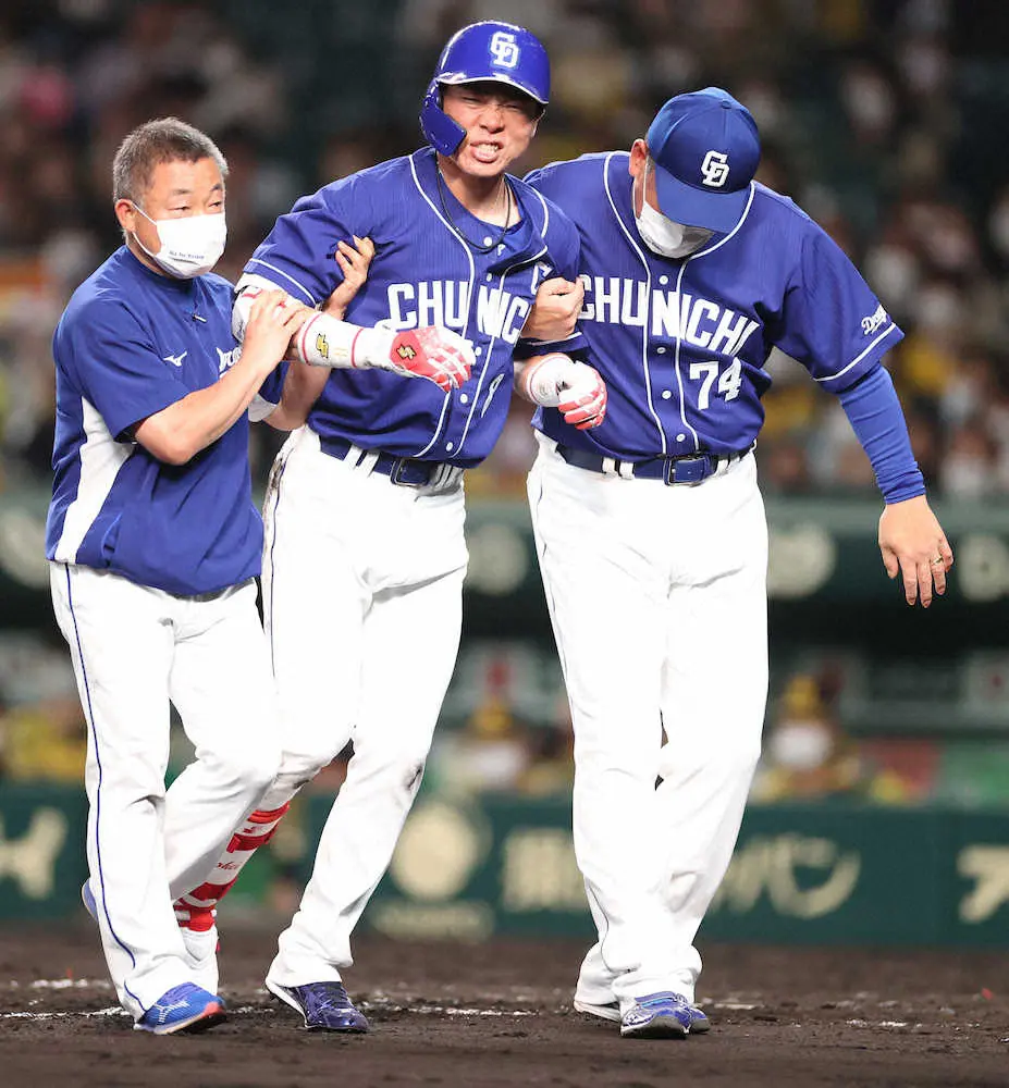 5回の打席で、1番・大島が阪神先発の西勇から、右膝付近に死球を受けて負傷退場。両側から抱えられながら、右足を引きずってベンチに戻り、一塁走者には岡林が代走で送られた。大島は試合前まで打率・362でリーグトップの成績だっただけに、痛い負傷となった。