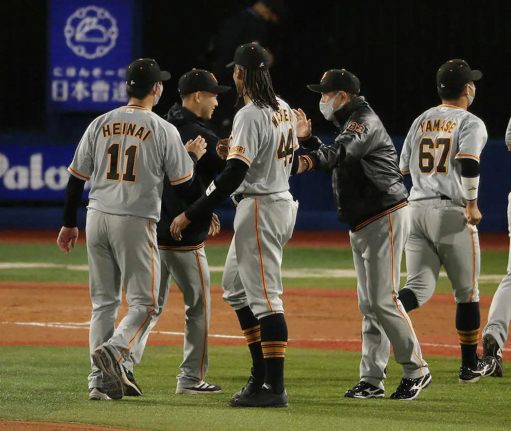最後は点差がある中で、少し登板間隔も空けた大勢が自己最速の159キロをマークしピシャリと締めた。原監督も「そうですね、ピッチングコーチの方から、ぜひちょっと、今日はどういう状況でも行かしてくれないか、と。まあ、久しぶりだったけど、見事なね。良い形で締めくくりましたね」と若き守護神の快投に目を細めていた。