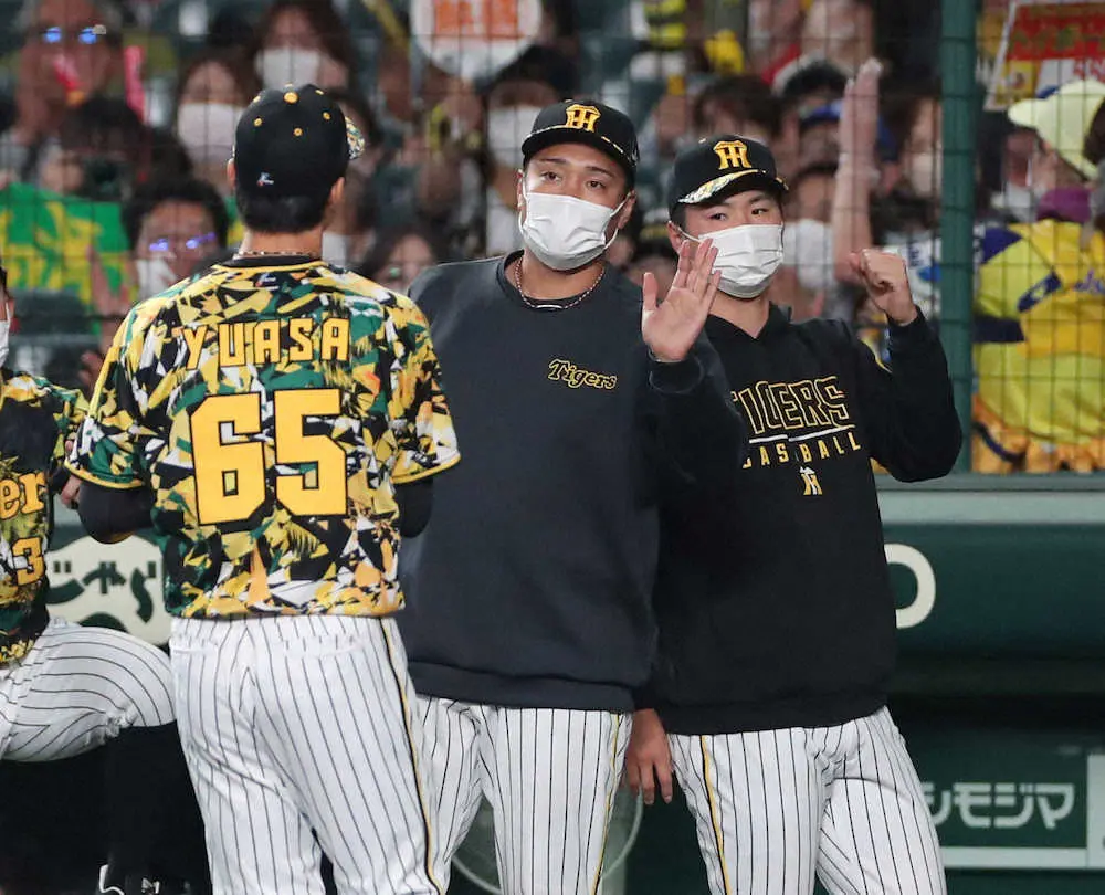 打線も一気呵成(かせい)に攻め立てた。2点を追う4回。先頭の3番・中野が2球目を中前打すると、続く佐藤輝が初球を右前打し、無死一、三塁。大ベテラン・糸井がここも初球をはじき返して1点を返すと、6番・山本が三度初球を狙ってセーフティースクイズを成功させて同点に追いついた(記録は投安)。