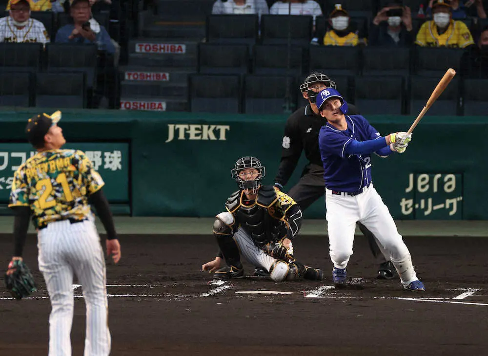 中日は最下位の阪神に痛い連敗。前の試合で右膝に死球を受けた大島が欠場する中で、奮闘したのは石川昂だ。2回1死一塁で秋山が投じた初球のスライダーをフルスイングで左翼席へ。チーム単独トップとなる4号先制2ランを放ち笑顔でベースを一周した。