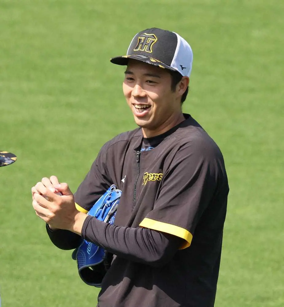 キャッチボールを終え笑顔の青柳(撮影・大森 寛明)28日撮影