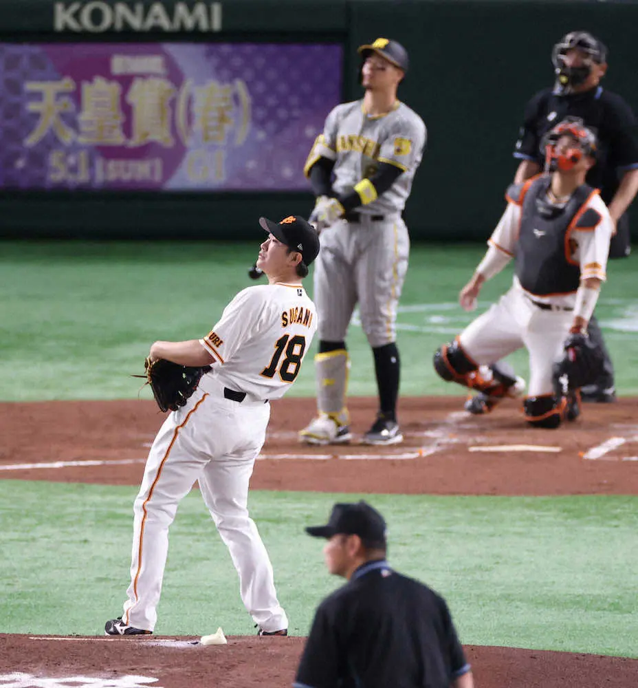 巨人のエース、菅野智之投手(32)が阪神戦(東京D)に先発登板。今季最短となる3回3安打2失点で早々に降板した。