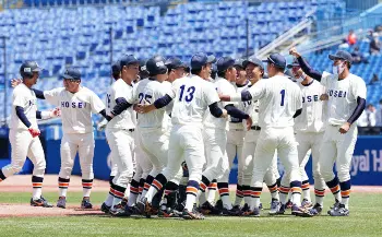 法大がサヨナラ勝ちで先勝した。4―4の9回2死満塁で途中出場の内海貴斗内野手(3年)の左前へのポテンヒットで決着。リーグ戦初安打で、さらには人生初のサヨナラ打となり「まずはチームが勝ったことが嬉しいので、後でゆっくりかみしめようかなと思います」と照れくさそうに笑った。